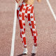 Vermelho e branco do Canadá mapeiam leggings canadenses de padrão de bandeira para mulheres.