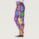 Imagens de estampas de pata de cachorro por toda parte. Design de estilo de desenho colorido. Leggings personalizadas. Versão roxa. Ideia do presente.