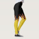 Você ficará muito quente nessas pernas que parecem estar pegando fogo. Ilustrações das chamas em amarelo e vermelho lambem a lateral destas leggings com a metade superior das leggings em preto contrastante.