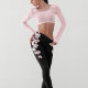 Primavera cereja floresce flores botânicas cor-de-rosa. Design floral na moda personalizado com fundo preto.