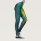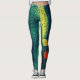O trabalho de arte de abstrato destas Leggings foi criado de uma fotografia original de um close-up por ZoeSPEAK de uma folha de banana. As curvas verdes ondulantes das folhas gigantes e nervuradas formam o fundo das gotas de chuva e cores, vermelha e amarela.