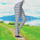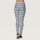 Senhoras Leggings em um padrão de linhas horizontais de cinzas. Um padrão repetido de ziguezaguis cria um design regular ousado. As cores são cinzas e brancas.