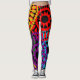 Estas leggings têm um design de História Negra de grandes círculos formados a partir de formas de chuva e círculos em vermelho, amarelo, roxo, verde e turquesa.