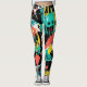 Colorful urban graffiti patchwork pattern leggings featuring bold abstract blocks, expressive brush strokes, scribbles, stars, and mixed-media textures in bright blue, yellow, pink, orange, and black. Energetic and edgy with a modern street art aesthetic, this seamless design is ideal for graffiti art lovers, maximalist style fans, creative teens, and contemporary art enthusiasts.