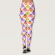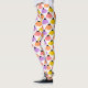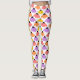Estas leggings têm um design de conflituosos espalhados sobre o design em amarelo, laranja, rosa e roxo num campo de branco.