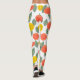 Estas leggings têm um design de flor escandinavo e folhas espalhadas em coral, ouro e verde-sábio.