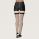 Pequenos shorts de couro preto com pernas de pele pálida com meias pretas de rede de pesca