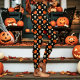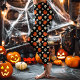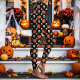 Legging Crânios, Abóboras e Flores de Halloween Preto