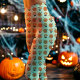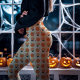 Legging Cream Vintage Pumpkins e Flores Halloween