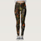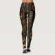 Sophisticated mid-century geometric pattern leggings featuring layered circles, arches, triangles, and rectangles in forest green, burnt orange, ochre, and cream on a black background. Rich textures and retro-modern shapes create a bold design ideal for Bauhaus lovers, vintage décor fans, and anyone drawn to moody modern style.