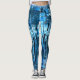 Um design de cor azul denim aplicado às leggings. Flashy, de uma espécie de arte desenhada com formas azul-escuras a azuis-claras, fornece um legal traje azul-elegante de corrida ou exercício do artista Jason Girard.