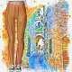 Legging Designer de Madeira Castanho-Abstrato de-Chic Mode