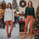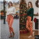 Color Palette: A highly festive and high-contrast palette of Solid Bright Red (background) and Glossy Gold (stripes).