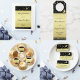 A cena de Natal criada das patas e estrelas brilhantes de ouro com a lua, e abaixo está um belo ornamento feito de pequenas patas e estrelas e árvores de Natal de patas douradas sobre fundo preto e de ouro com uma saudação agradável. Minha coleção traz a magia das férias à vida, abraçando o espírito de união e a alegria que os animais de estimação trazem aos nossos corações. Cena de Natal - onde cada momento é envolto no calor da amizade e no cinzeiro das patas e estrelas ouros. Você deve saber que consegue uma foto!