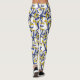 As leggings temáticas de vôlei destas raparigas apresentam um padrão aleatório de volichões realísticos, azuis estilizados, dourados e brancos, de diferentes tamanhos, virados para todos os lados num fundo branco personalizável - os painéis azuis e dourados dos volleybolas são misturados com um padrão caleidoscópico floral artístico - por katz_d_zynes