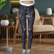 Legging Estirpe de Padrão de Brilhante Branco-Branco-Cinto