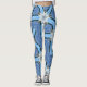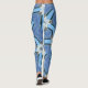 Legging estrelas de flores brancas azul geométrico