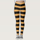 Leggings temáticas do Dia das Bruxas com design de listras laranja e pretas. Estas leggings são perfeitas para celebrar o Dia das Bruxas, com seu esquema de cor laranja e preto. O padrão listrado adiciona um toque divertido e festivo adequado para a estação assustadora.