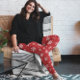 Legging Feliz Natal Flocos de Neve Vermelho Padrão