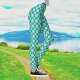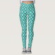 O design de Leggings das damas está em formas verdes de pétalas escuras numa cor de base turquesa.