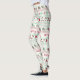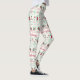 Leggings com um padrão repetitivo no fundo, em um estilo feio de suéter de Natal. O padrão é composto por meias, bolas de natal, estrelas e flocos de neve. Com o texto de Feliz Natal em vermelho. Divertido e festivo.