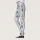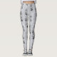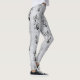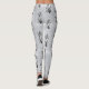 Flores brancas abstrato pretas brilhantes em Leggings prateadas.