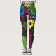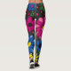 Flores bonitas e brilhantes e coloridas em leggings pretas
