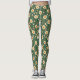Flores cremes com centros de laranja em fundo verde criam um belo par de leggings.