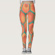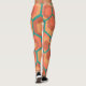Essas leggings têm um design geométrico de hexágonos em conjuntos de três que se parecem com flores em ouro, laranja e vermelho em um campo de chá.