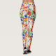 Flores aquarelas e felinos marroquinos, padrão caprílico em leggings de gatos laranja, azul, vermelha e verde.