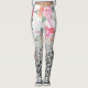 Legging Flores-rosa-impressas, pretas, Douradas prateadas,