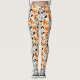 Flores laranja, folhagem verde-azul e escura, leggings florais femininas.