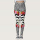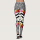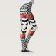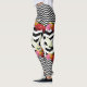 Gatos e flores em combinação de chevron grande e pequeno em fundo preto e branco em leggings.