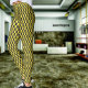 Abstract graphic of geometric design, displays textured, gold panels, shaded with brown, yellow, and white-layered with panels of black, and digitally, arranged in a checkerboard pattern.