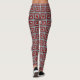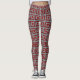 Um padrão de crochê de quadrados vermelhos e cinzas granhosos decoram estas lindas leggings por cima de impressão