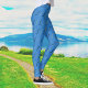 Senhoras Leggings em um padrão de diversão azul. Um padrão repetido de imagens finas em forma de S cria um design distinto. As cores principais são tons de azul.