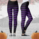Legal e único por todo o impressão das leggings do Dia das Bruxas, ideia fantasma para ela. Padrão preto e roxo divertido com linhas horizontais retrorreflectoras. Você pode personalizar as leggings roxas.