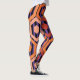 Essas leggings têm um design geométrico de hexágonos em quatro tons de laranja num campo de listras pretas e roxas.