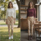 Legging Light Tan Diagonal Plaid Subtle Weave