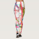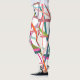 Estas leggings têm um design geométrico de linhas dispersas em cores florais - tons de rosa, laranja, amarelo, azul e verde.