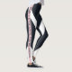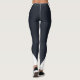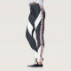 Não pare até que você esteja orgulhoso, leggings azuis escuras com design geométrica branca e citações motivacionais em uma faixa de rosas claro.
