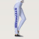 Nome personalizado Leggings da escola de flores brancas-claras. Design elegante e elegante. Flor branca sobre fundo azul claro. #personname #lightblueleggings
