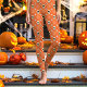 Legging Padrão de Caveiras e Flores de Halloween Laranja