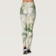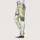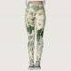 Legging Padrão de Flores Brancas Botânicas e Folhas Verde