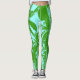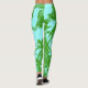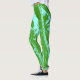 Leggings com um padrão de palmeiras. Pernas de design de palmeiras. Palmeiras tropicais num design de efeito pós-erizado. Verde e azul.