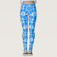 Leggings em um padrão mandala de doze pontos em tons de cobalto e azul-cerulano com turquesa e aqua, acentuados com branco