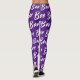 Legging Padrão de texto do livro branco e roxo do Hallowee