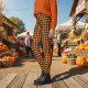 Legging Padrão de Xadrez de Búfalo Negro Laranja-Corte