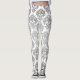 Legging com Padrão Elegante Moderno Chic Damasko Prata e Branco