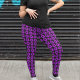 Para aqueles que amam roxo! Leggings elegantes e resistentes que apresentam a foto de uma flor de Geranium roxa em um fundo preto e impressa em um padrão repetitivo. Um design floral divertido! Selecione o tamanho das suas leggings.